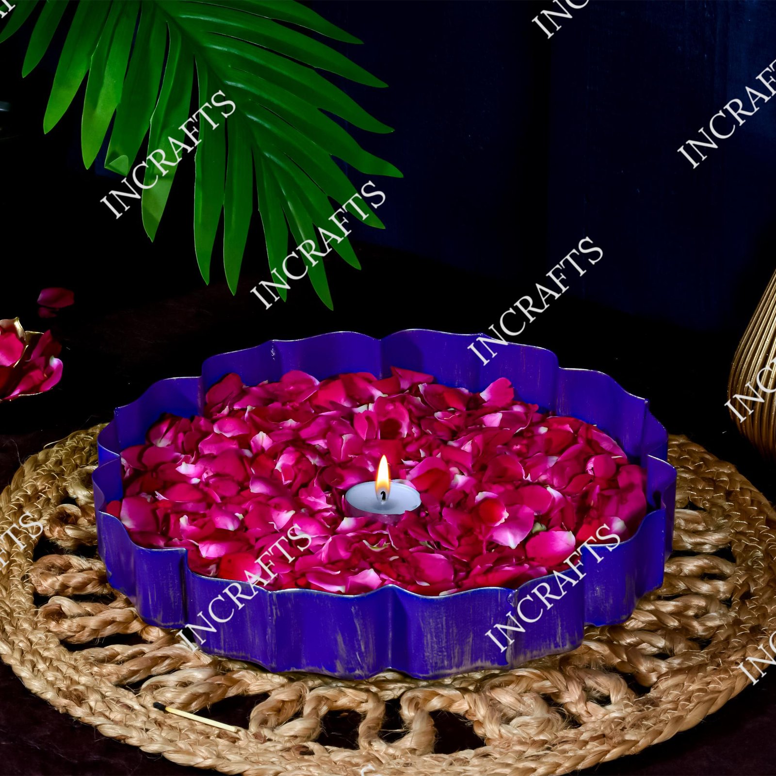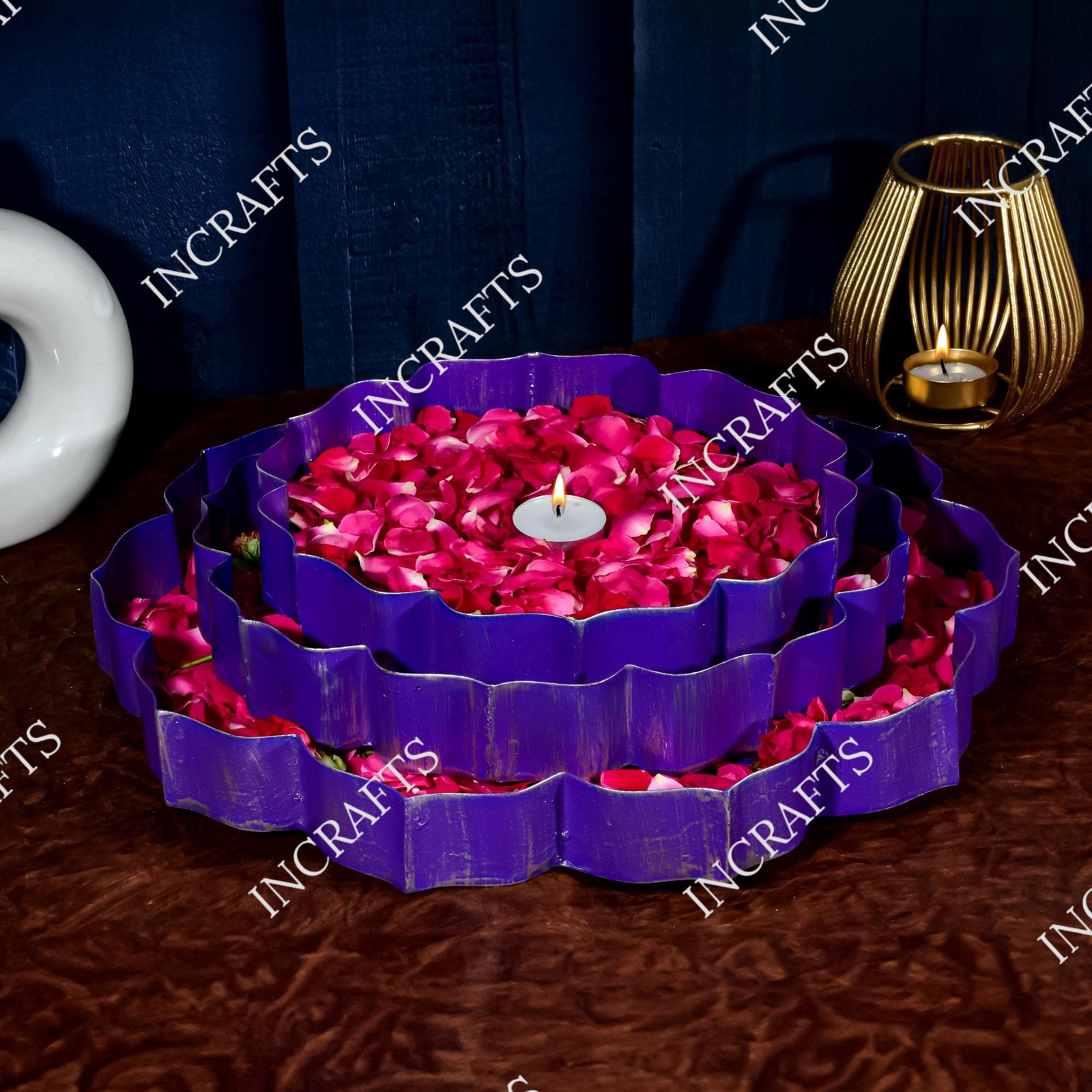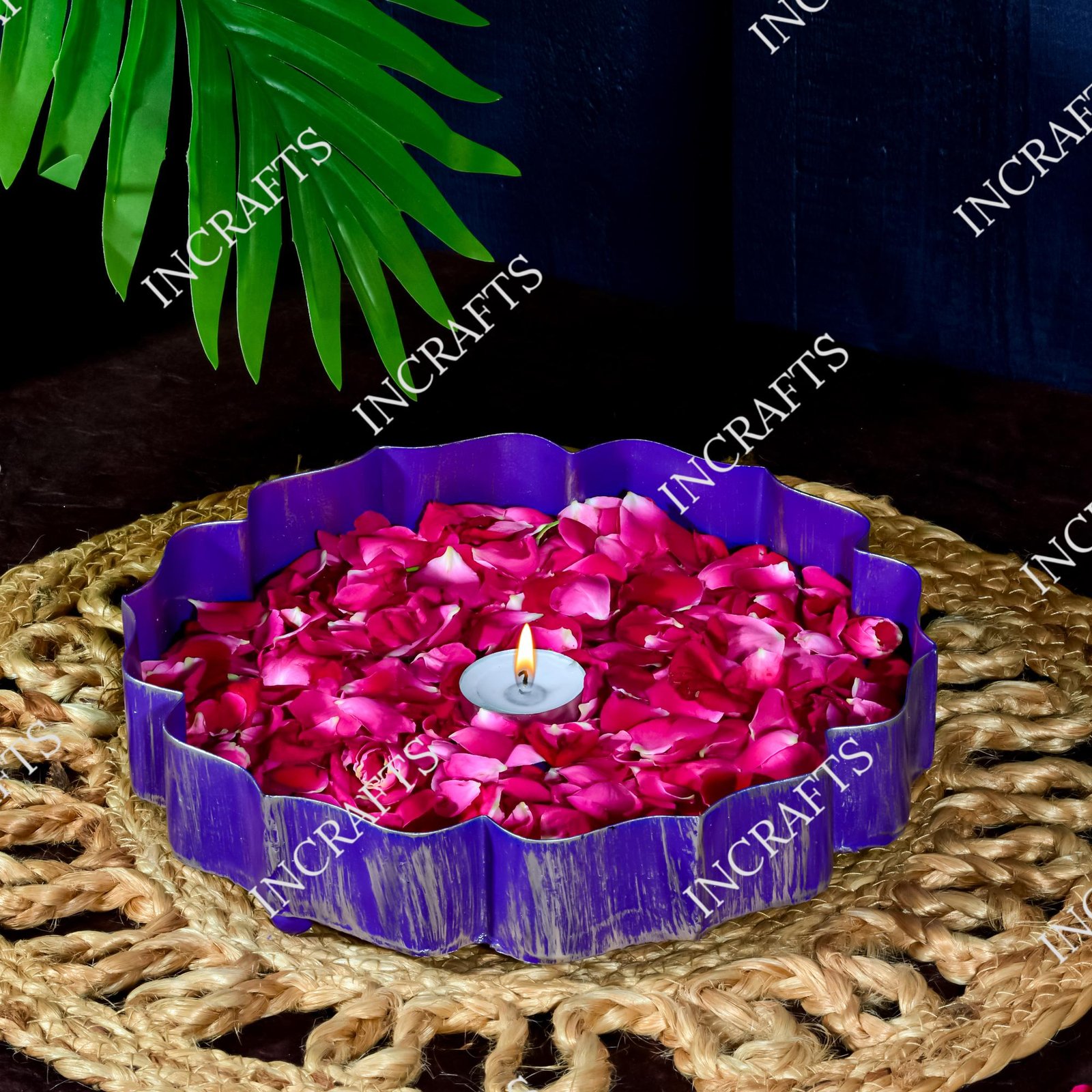 Make your living room or entryway stand out with this Purple and Gold Metal Anandi Urli. Not only is it a fabulous décor to your home but also a great gift that you can present to your loved ones for housewarming, thanksgiving, birthdays, wedding anniversary, Mother’s Day, Christmas, Diwali and more. With a tint of gold on the edges, this urli can take pride of place on your coffee table or bring your boring balconies to life.