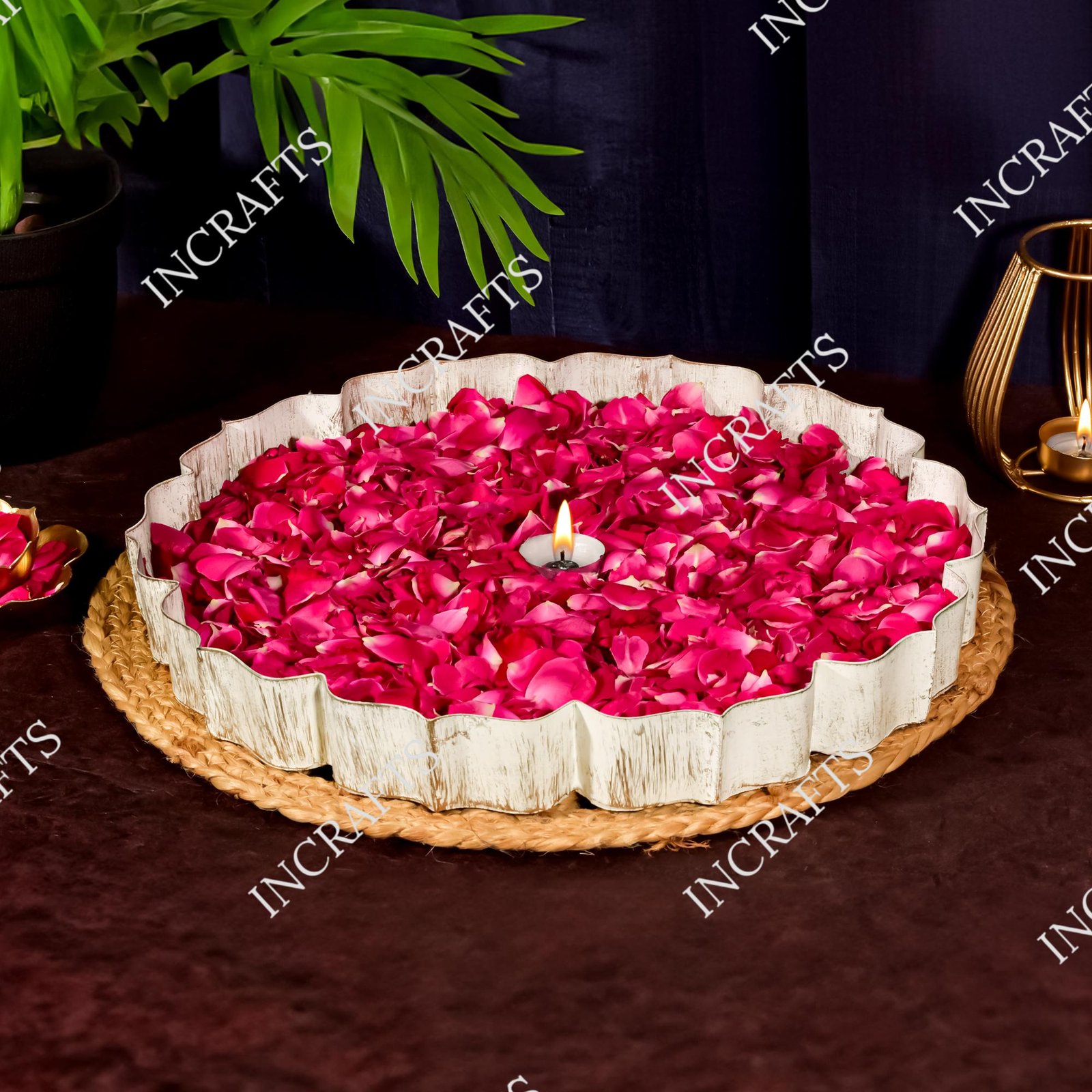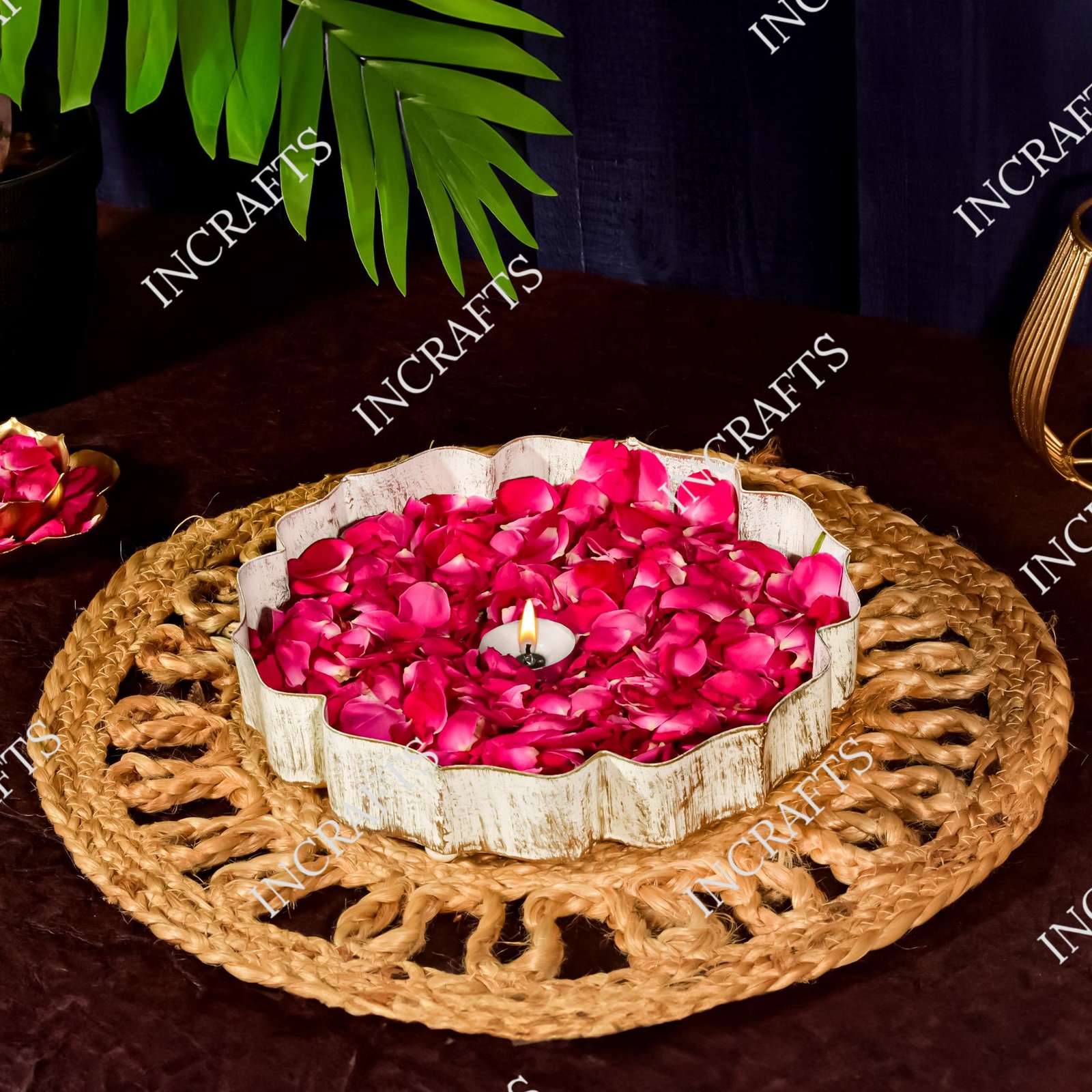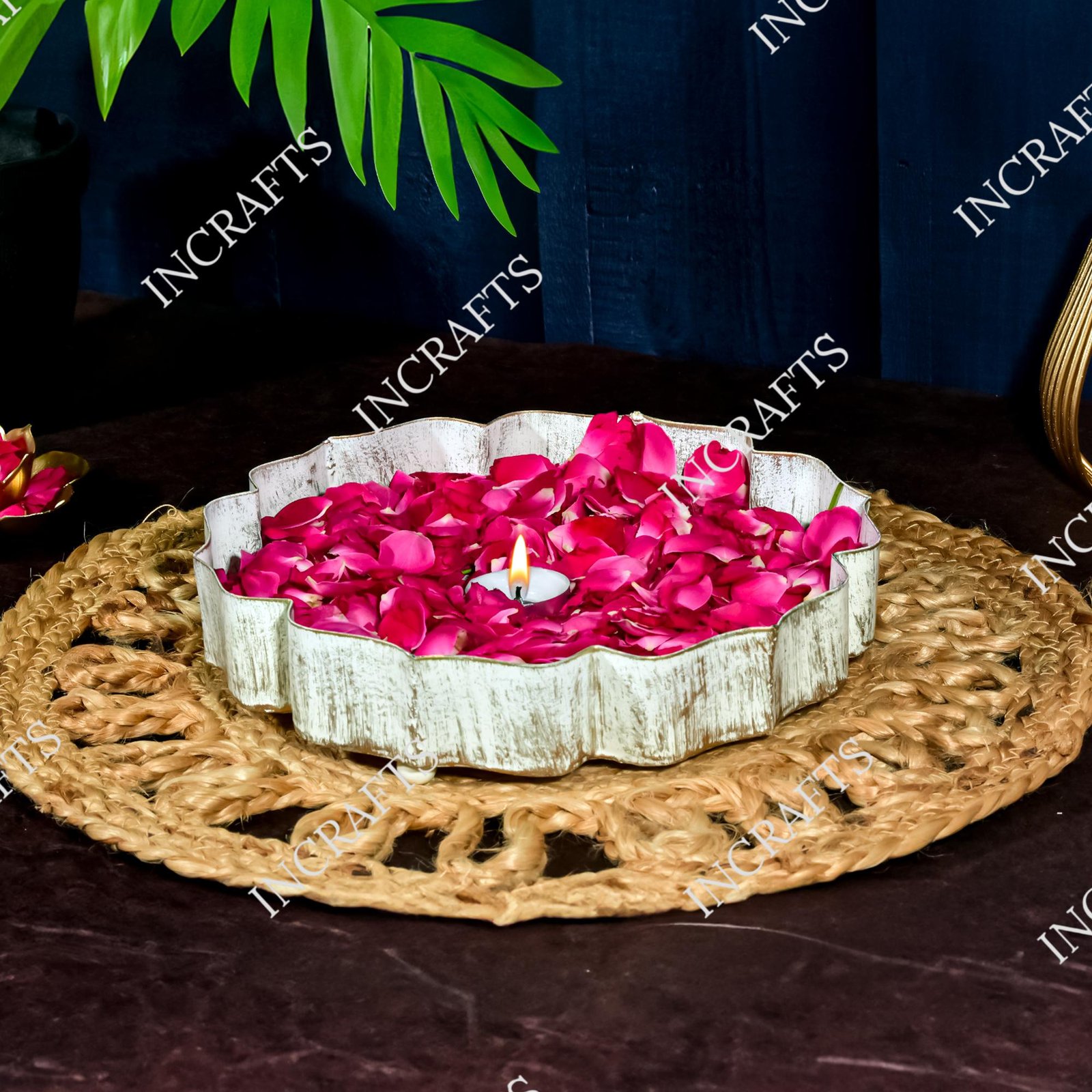 Make your living room or entryway stand out with this White and Gold Metal Anandi Urli. Not only is it a fabulous décor to your home but also a great gift that you can present to your loved ones for housewarming, thanksgiving, birthdays, wedding anniversary, Mother’s Day, Christmas, Diwali and more. With a tint of gold on the edges, this urli can take pride of place on your coffee table or bring your boring balconies to life.