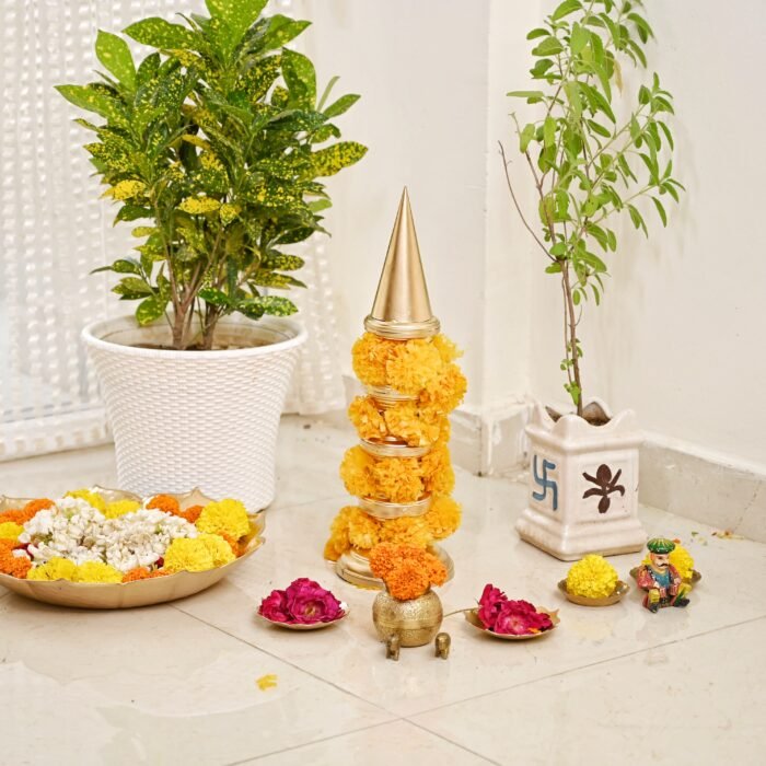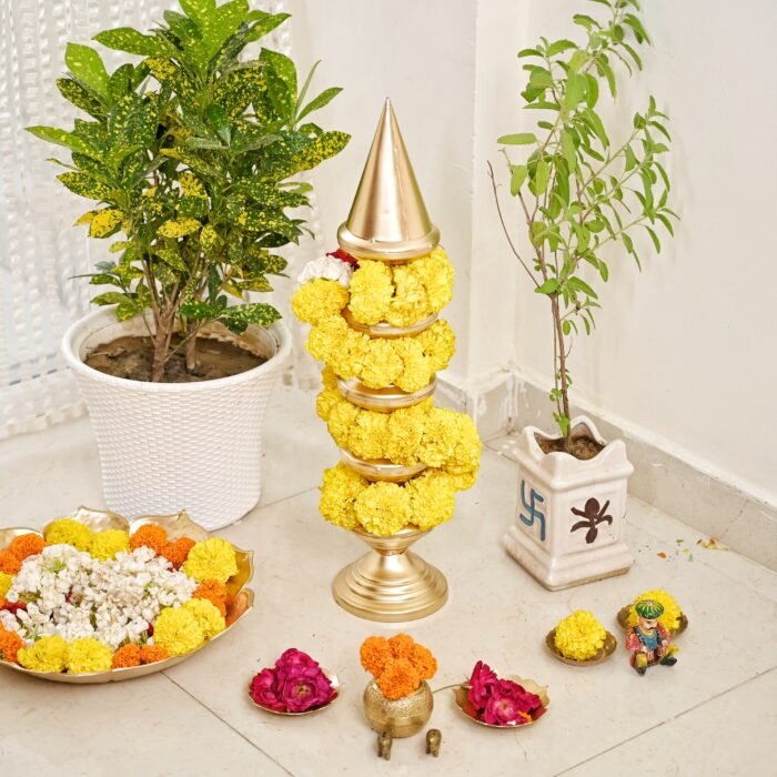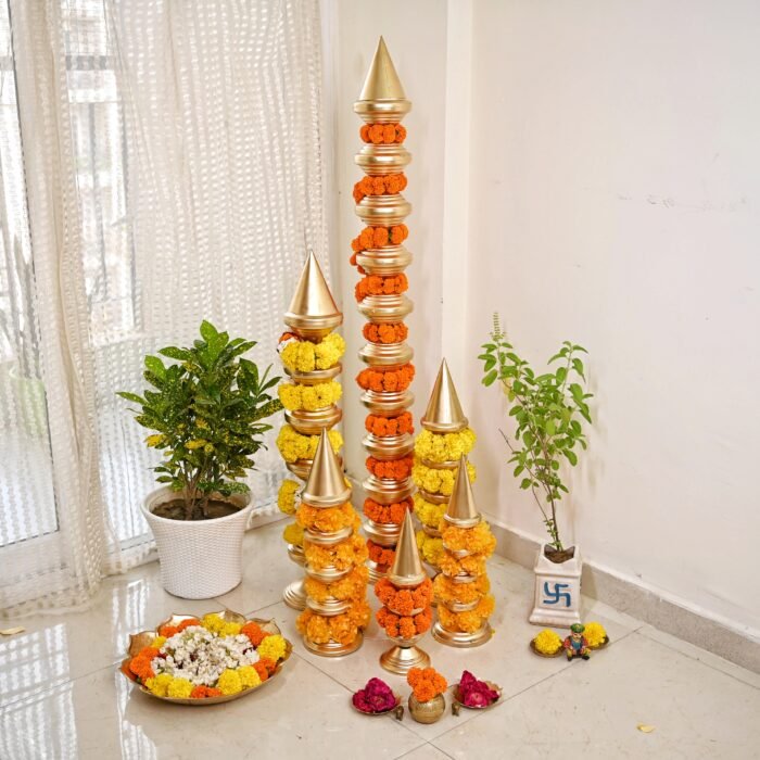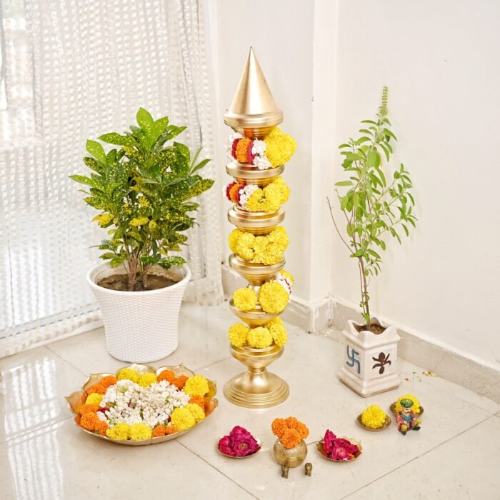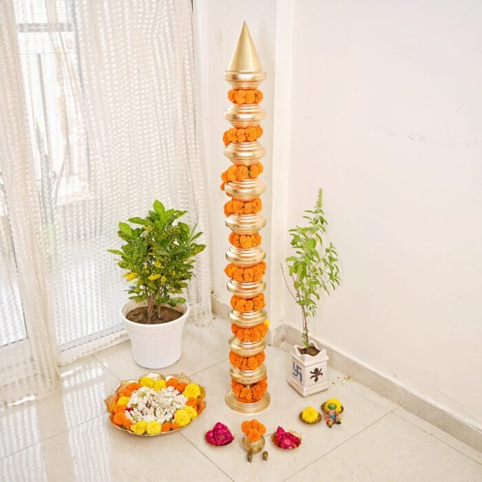 Add a royal and spiritual charm to your space with the Mandir Shringar Stambh. Inspired by traditional temple architecture, this golden pillar is designed with multiple tiers that can be beautifully adorned with flowers, garlands, or lights. The pointed top adds to its sacred look, making it an auspicious piece for pooja rooms, Tulsi vrindavan, and temple entrances.