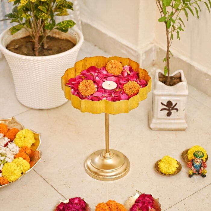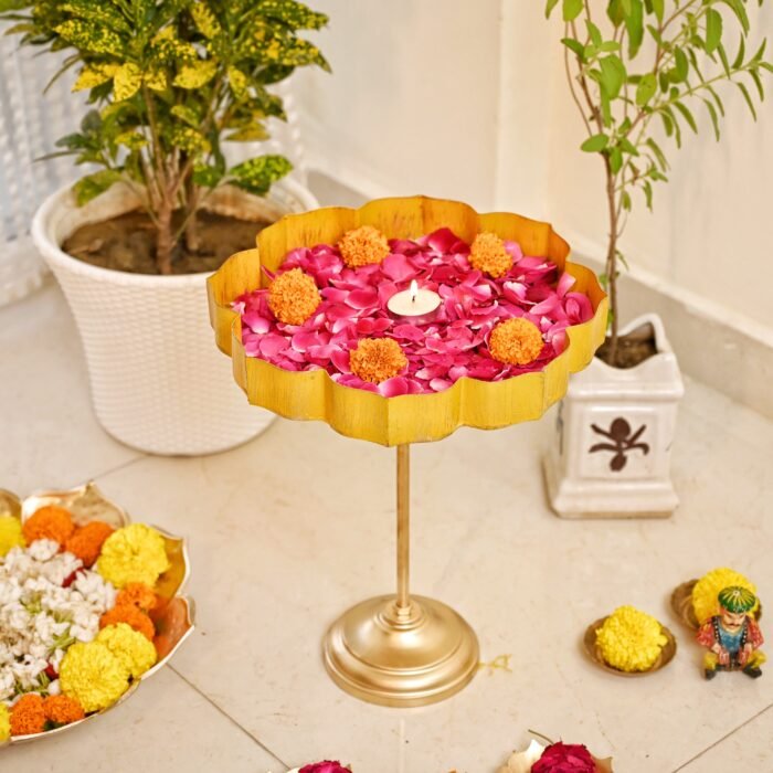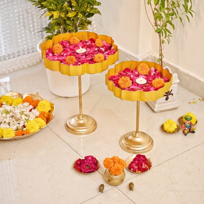 Be the first to review “Elegant Yellow & Gold Standing Urli” Cancel reply