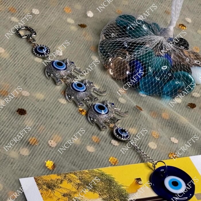 Remove bad influences, negative energy, evil spirits, and bad chi from your home or office with this evil eye hanging. it features a beautiful design that will up the style quotient while removing evil forces from around. The blue evil eye beads added with a metal work best to shield your surroundings against buri nazar. From feng shui, vastu, and horoscopic points of view, prosperity too. Hang it at your front door, on the wall or in the car, the choice is yours.