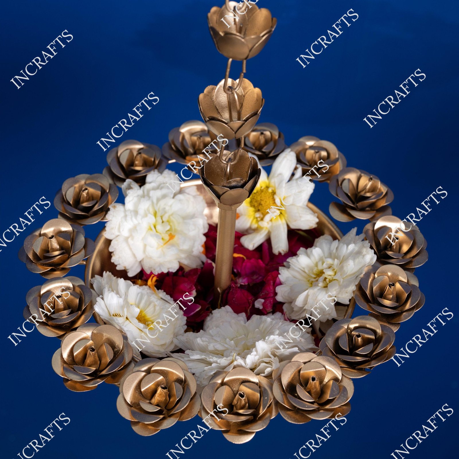 Made out of iron, this florally designed rose hanging Urli adds to the charm of Indian households. You can use it to decorate the interior or the exterior of your house. Incraft’s offers you this Floral Hanging Urli to add a magical touch to your home.
