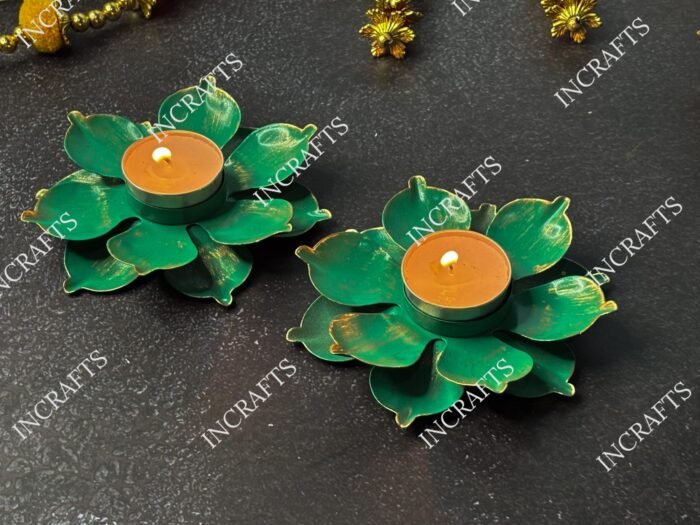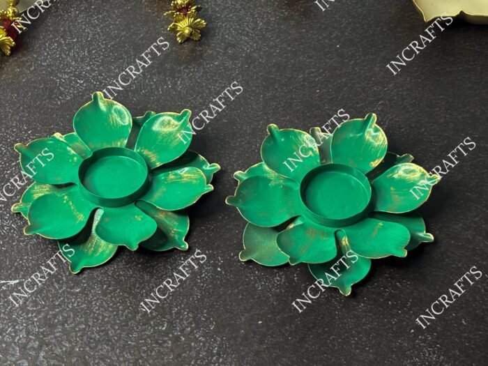 Be the first to review “FLORAL SHAPED GREEN METAL DIYA (Set of 2)” Cancel reply