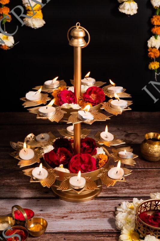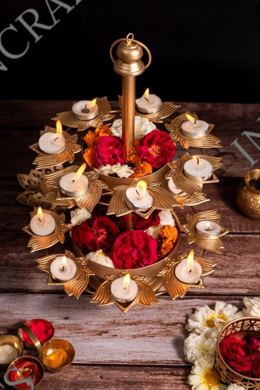 You need Rangavalli stands to complete the home decor in the true sense. incraft’s decorative Stand is made of metal and strives to achieve a great balance between Indian and modern aesthetics. The golden tealight holder has stands in the shape of flowers and urlis that can hold multiple tea light candles together, giving a stunning glow. The stand can be placed on the mantelpiece or console table. It can be kept in any corner of your home to add an element of decor and brighten up the mood at festivals and special occasions.