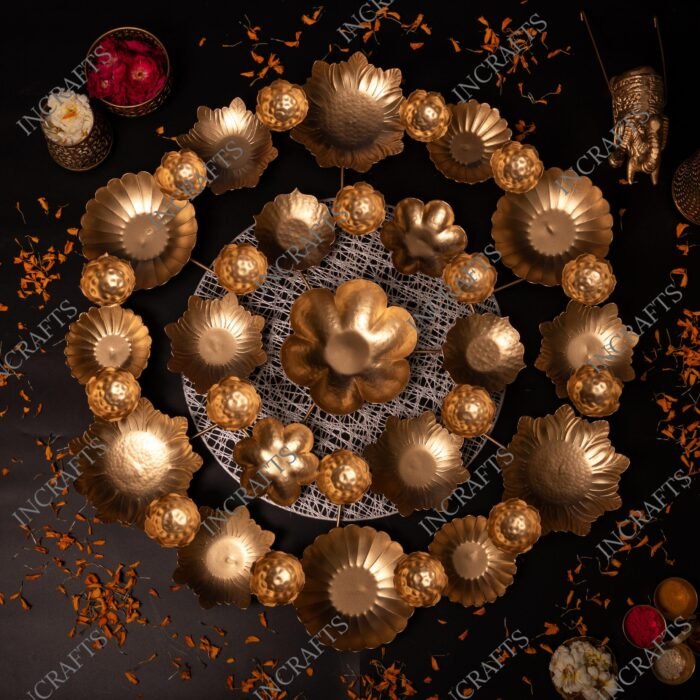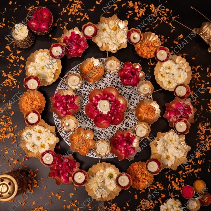 You need Rangavalli stands to complete the home decor in the true sense. incraft’s decorative Stand is made of metal and strives to achieve a great balance between Indian and modern aesthetics. The golden tealight holder has stands in the shape of flowers and urlis that can hold multiple tea light candles together, giving a stunning glow. The stand can be placed on the mantelpiece or console table. It can be kept in any corner of your home to add an element of decor and brighten up the mood at festivals and special occasions.