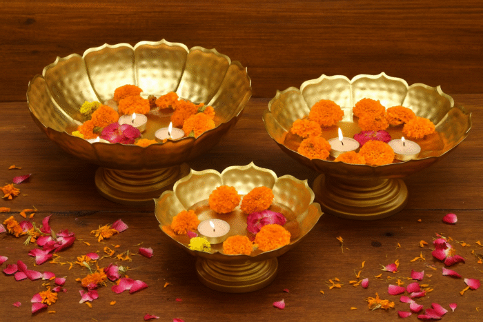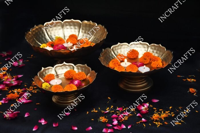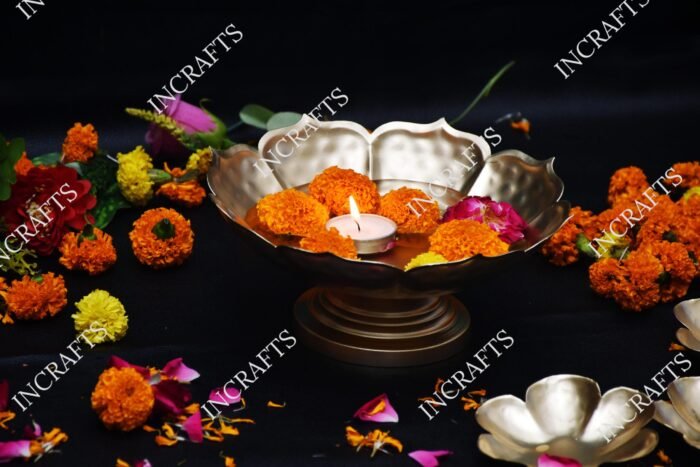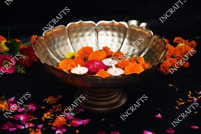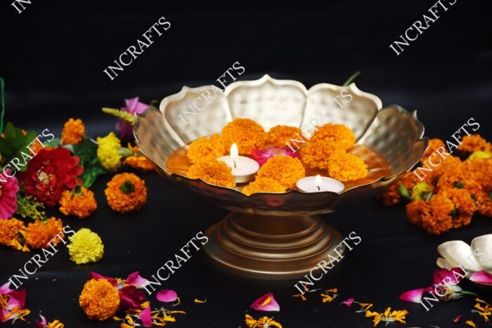Urlis are considered auspicious, festive and are known to bring in good luck. They say water attracts wealth, hence urlis filled with water and decorated with flower petals and t-lights makes them perfect for any occasion. This statement piece will fill up your home with light and is perfect to set a tone for any festivity or occasion.