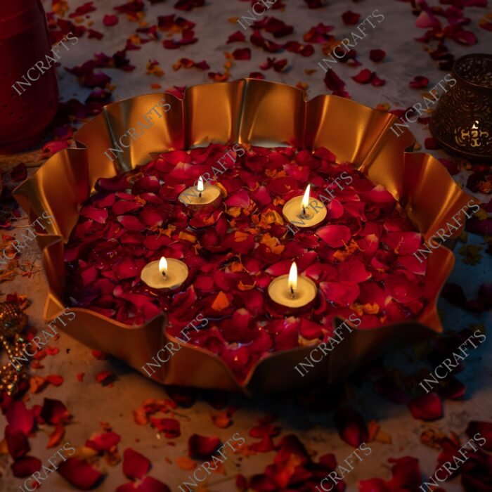 Sitara Urli- “Atithi Devo Bhava” – Our guests are to be treated as Gods. When we welcome them into our home, Urlis find a special mention in our traditional styles of home decor. Any important festival or wedding decor is incomplete without a large bowl of fragrant water at the entrance.