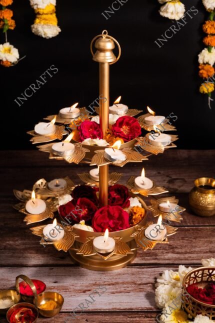 TEJASVI FLORAL URLI- Enhance the look of your home with the Luxury Gold Finish Lotus Urli. This beautifully designed urli exudes elegance and luxury with its silver finish and lotus shape. Perfect for decorating your living space or adding a touch of sophistication to any event.